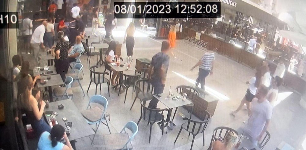 Öte yandan saldırı anında yaşanan paniğe ilişkin güvenlik kamerası görüntüleri ortaya çıktı.