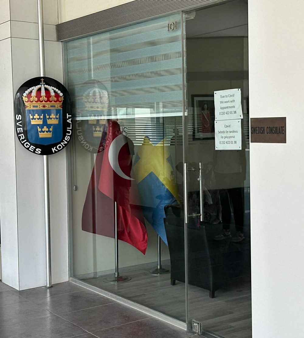 Olay, dün saat 12.45 sıralarında Konak ilçesi Kıbrıs Şehitleri Caddesi’ndeki İsveç Fahri Konsolosluğu’nda meydana geldi.